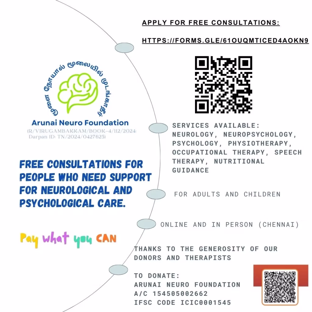 Your contribution, however big or small, can make a real difference in the lives of individuals and families affected by neurological conditions. Donations can be directly transferred to the Arunai Neuro Foundation bank account.